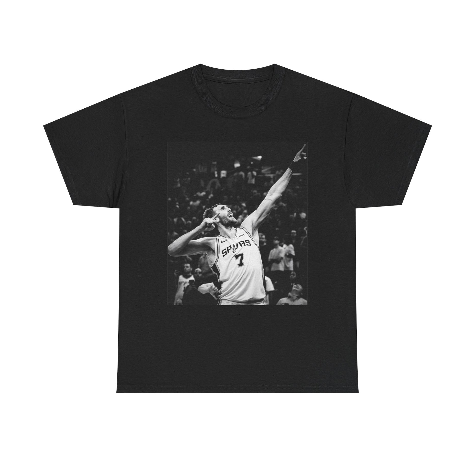 This tee captures the raw energy of a night on the court. The black-and-white photo printed on the front shows a player mid-celebration — a freeze-frame of sweat, motion, and crowd noise — that reads like a memory you can wear. The shirt’s relaxed cut and durable cotton let you move freely, whether you’re cheering courtside, running errands, or meeting friends for a casual night out. It’s for people who live for the game’s highs, who appreciate gritty, documentary-style imagery, and who want clothing that feels lived-in from the first wear. The monochrome art blends easily with layered streetwear looks and vintage denim. Wear it when you want to carry that charged, stadium moment into everyday life.